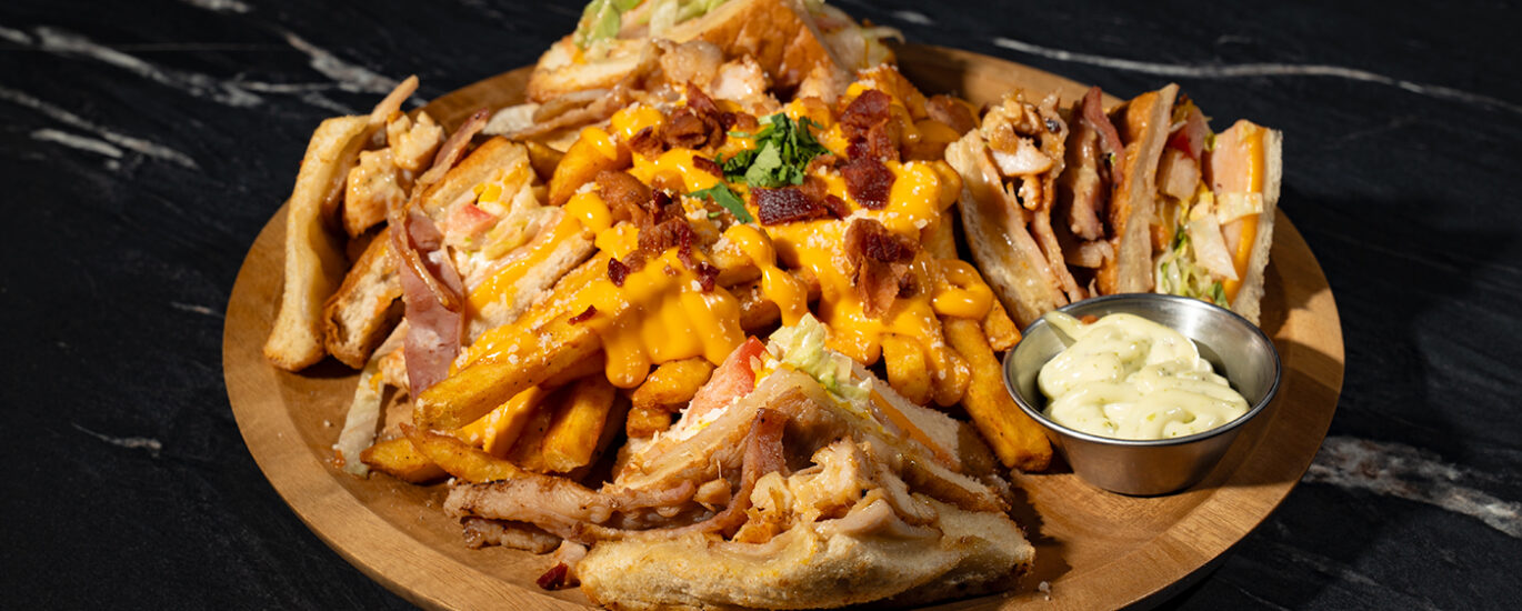 Far from your average sandwich, our Club House is a celebration of textures and tastes. Built with toasted bread, juicy grilled chicken breast, crispy bacon, fresh lettuce, ripe tomato, and a touch of our house-seasoned mayo, it’s served with golden fries or a refreshing side salad.